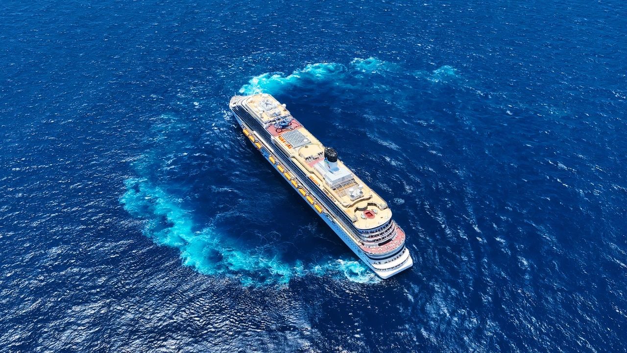 本幅照片拍攝于大型郵輪試航期間,用航拍記錄下郵輪在海上航行的絕美瞬間。
