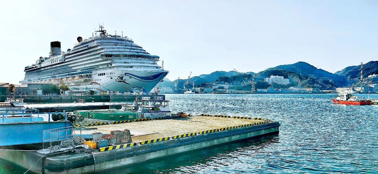 中國首艘國產大型郵輪“愛達·魔都號”與曾經建造過郵輪的日本三菱重工船廠隔江相望。