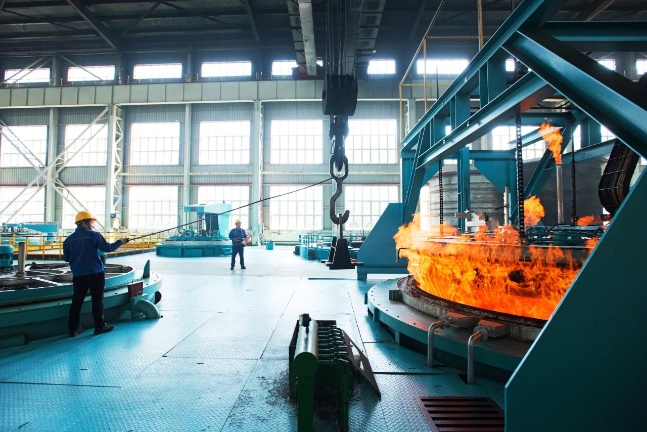 熱處理工人們面對著高達800攝氏度的高溫火焰,毫無懼色,依然穩定地操作著設備。