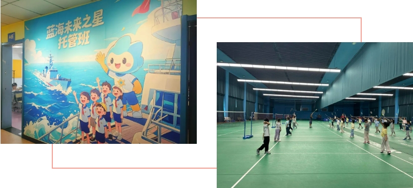 七〇一所“藍海未來之星”托管班,分為7月1日至31日第一期和8月1日至31日第二期,每期均為周一到周五全天,按照年級年齡及報名人數分班。托管內容含學玩融合、教師輔導,上午和下午各一節大課,上午以興趣培養為主,下午以文體活動為主,其他時間安排課業作業完成等。
